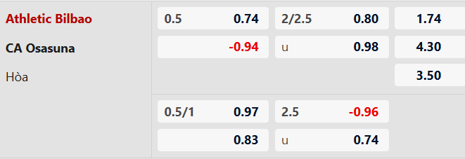 Soi kèo châu Á Athletic Bilbao vs Osasuna: