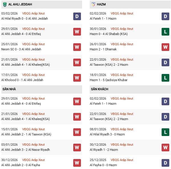 Thành tích đối đầu Al Ahli vs Al Hazem: