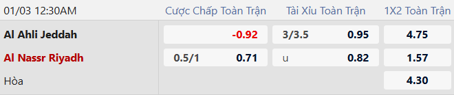 Thông tin kèo bóng đá Al Ahli vs Al Nassr: