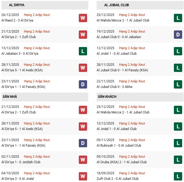 - Trên sân nhà, Al Diriyah thắng cả 2 trận trước Al Jubail.