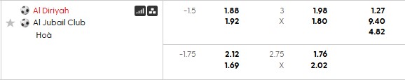Thông tin tỷ lệ bóng đá Al Diriyah vs Al Jubail: