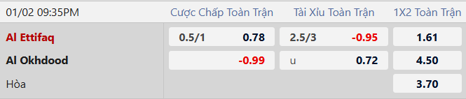 - Trên sân nhà, Al Ettifaq thắng 1, hòa 1 trước Al Okhdood.