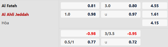 Thông tin tỷ lệ kèo Al-Fateh vs Al Ahli: