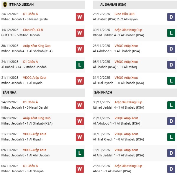 Thống kê phong độ Al Ittihad vs Al Shabab: