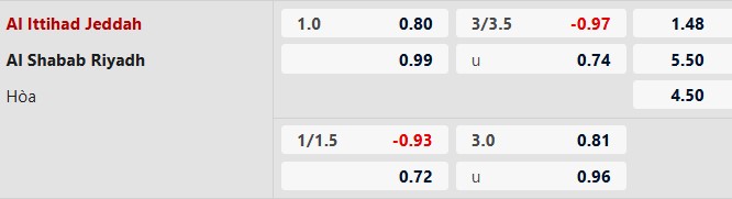 Thông tin tỷ lệ kèo Al Ittihad vs Al Shabab: