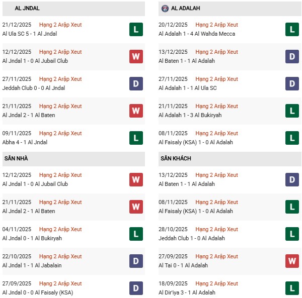 - Trên sân nhà, Al Jandal hòa 1, thua 1 trước Al Adalah.