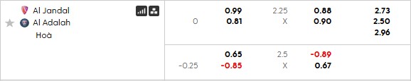 Al Adalah đang chịu áp lực lớn từ cuộc đua trụ hạng và phong độ tổng thể kém ổn định nên Al Jandal là lựa chọn đáng tin cậy hơn.