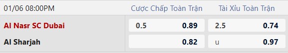 Thông tin tỷ lệ Al Nasr Dubai vs Al Sharjah: