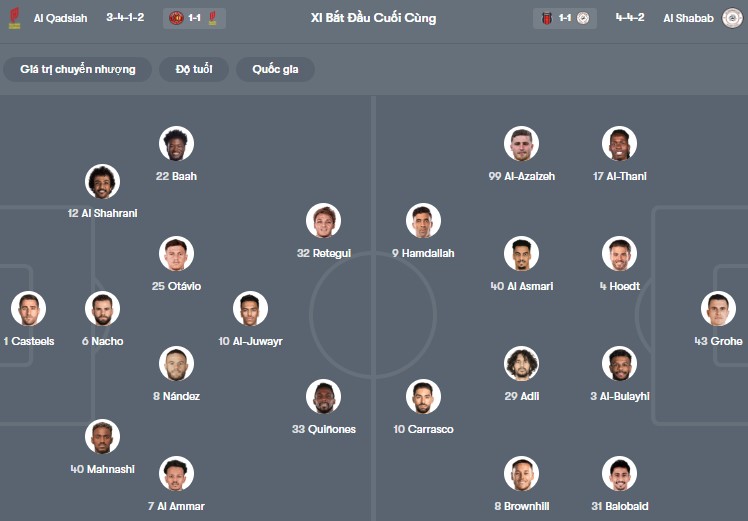 Đội hình dự kiến Al Qadisiya vs Al Shabab: