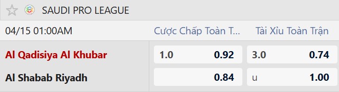 Thông tin tỷ lệ cược Al Qadisiya vs Al Shabab: