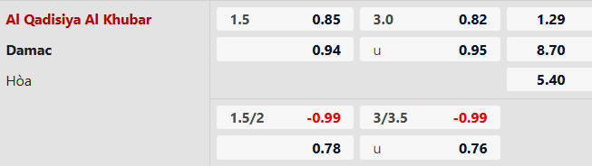 Thông tin tỷ lệ kèo Al-Qadsiah vs Damac: