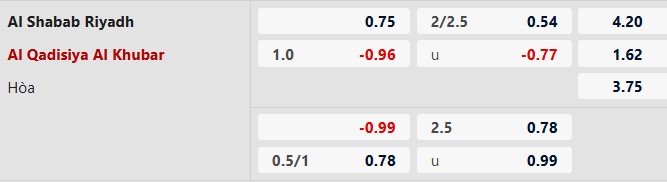 Thông tin tỷ lệ bóng đá Al Shabab vs Al Qadisiya: