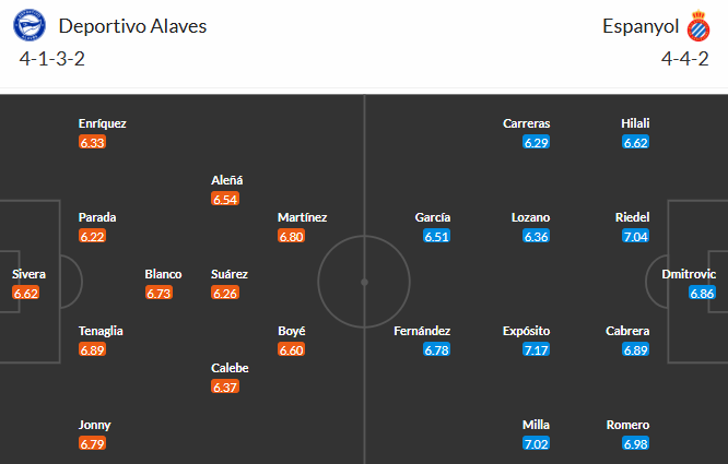 Làm khách trước Alaves có lối chơi khó chịu, Espanyol sẽ không quá chủ động trong việc tấn công. Thay vào đó họ chơi cầm chừng và chờ đợi những sai lầm từ phía đối thủ. Tất nhiên, nếu có chiến thắng là điều tuyệt vời, còn không thì 1 điểm rời sân Alaves cũng là thành công.
