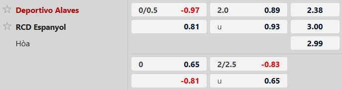 Soi kèo tài xỉu Alaves đấu với Espanyol: