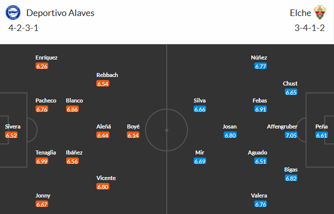 - Alaves thắng 3, hòa 1, thua 6 trong 10 trận gặp Elche gần đây.