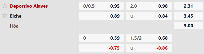 Thông tin tỷ lệ bóng đá Alaves vs Elche:
