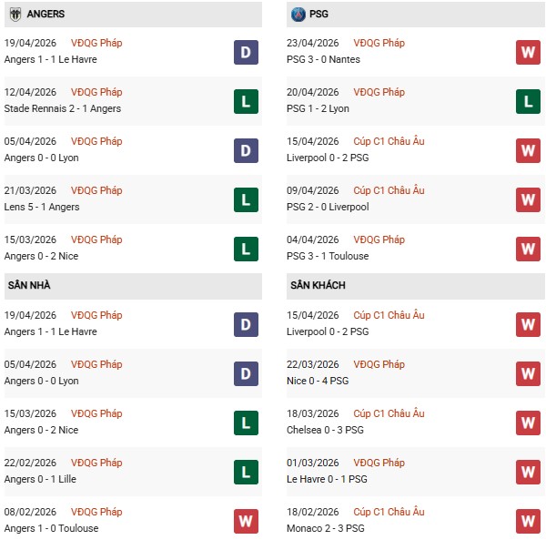 Tuy nhiên, đánh bại PSG ở thời điểm hiện tại là điều không tưởng. Angers bước vào trận đấu này mà chưa thắng trận nào trong 5 vòng đấu gần nhất kể từ khi đánh bại Nantes 1-0 hồi đầu tháng 3. Việc ghi bàn cũng rất khó khăn đối với họ tại Raymond Kopa năm nay, khi Angers chỉ ghi được 1 bàn thắng hoặc ít hơn trong 7 trận đấu trên sân nhà của họ trong năm 2026.