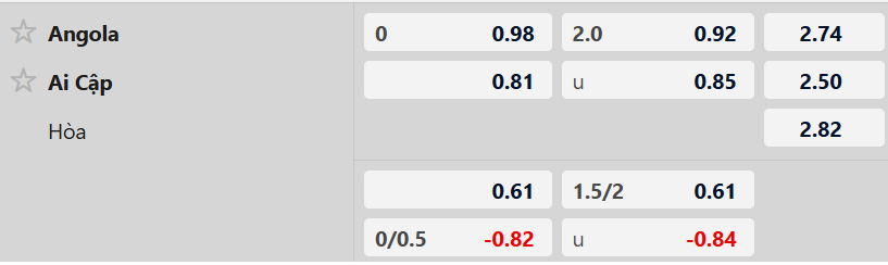 Thông tin tỷ lệ kèo Angola vs Ai Cập: