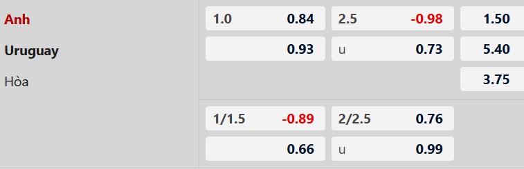 Soi kèo châu Á Anh vs Uruguay: