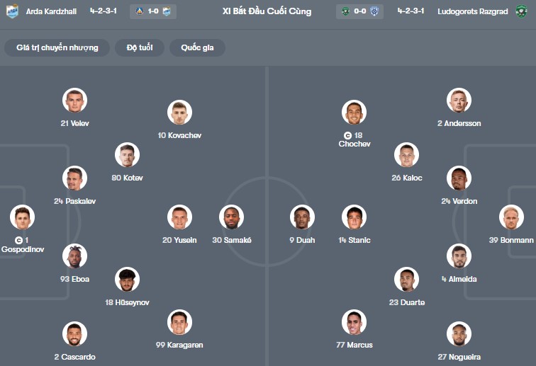 Đội hình dự kiến Arda Kardzhali vs Ludogorets: