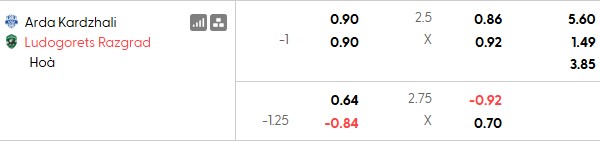 Thông tin tỷ lệ kèo Arda Kardzhali vs Ludogorets: