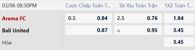 Lựa chọn tốt nhất: Arema -1/2 cả trận