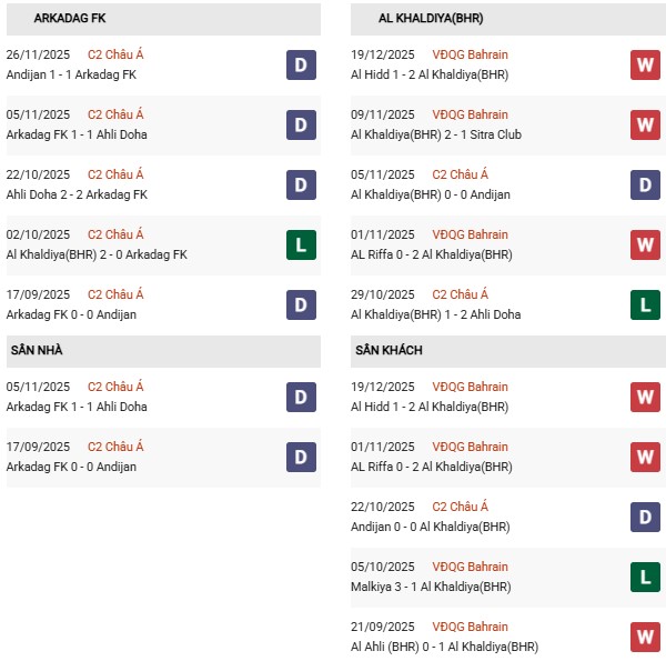 Thống kê phong độ Arkadag vs Al Khalidiya: