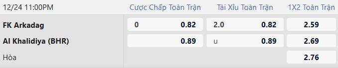 Thông tin tỷ lệ Arkadag vs Al Khalidiya: