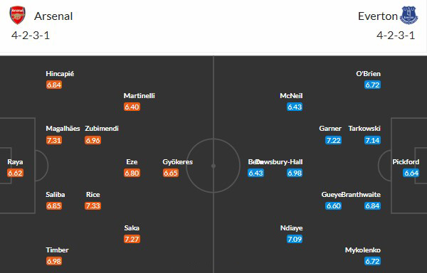Đội hình dự kiến Arsenal vs Everton: