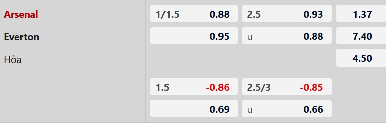 Thông tin tỷ lệ kèo bóng đá Arsenal vs Everton: