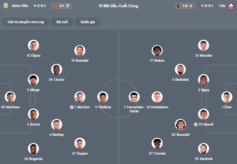 Thông tin lực lượng Aston Villa vs Lille: