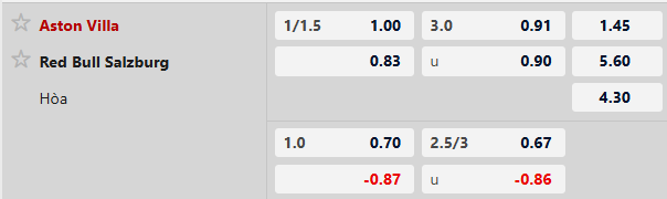 Soi kèo châu á Aston Villa vs RB Salzburg: