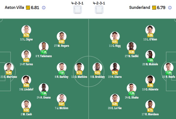 Đội hình dự kiến Aston Villa vs Sunderland: