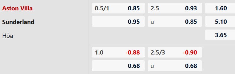 Soi kèo châu Á Aston Villa vs Sunderland: