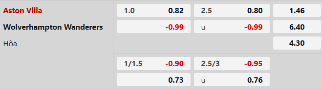 Thông tin tỷ lệ bóng đá Aston Villa vs Wolves: