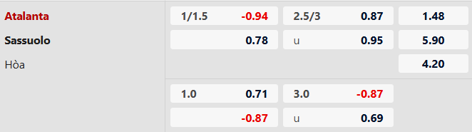 Thông tin tỷ lệ kèo Atalanta vs Sassuolo:
