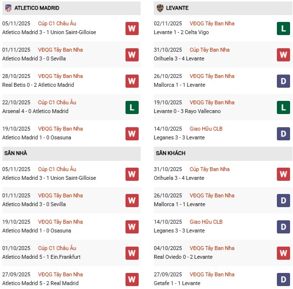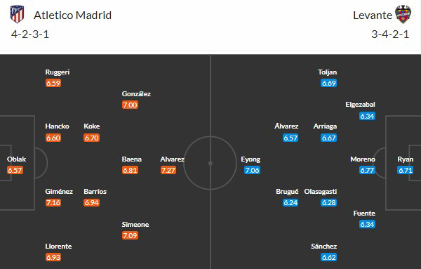 Levante đương nhiên không xứng tầm đối thủ với Atletico. Điều này thể hiện rõ qua thống kê về đối đầu giữa 2 đội. Theo đó, trong 11 lần chạm trán vừa qua, nửa đỏ trắng thành Madrid áp đảo. Cụ thể, Atletico thắng 6, hòa 3, chỉ phải nhận 2 thất bại. Trên sân nhà Metropolitano, đội bóng của HLV Simeone cũng thắng 11/13 lần tiếp đón Levante gần đây tính trong khuôn khổ La Liga.