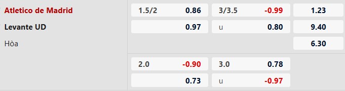Chẵn bàn thắng: 6/8 trận gần đây của Atletico kết thúc với tổng số bàn thắng là số chẵn. 8/10 trận sân khách vừa qua của Levante xảy ra tình trạng tương tự.