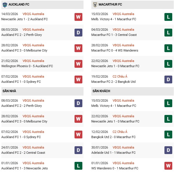 - Auckland thắng 2, hòa 1 trong 3 trận gặp Macarthur gần đây.