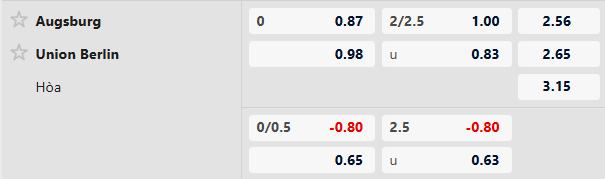 Thông tin tỷ lệ kèo Augsburg vs Union Berlin: