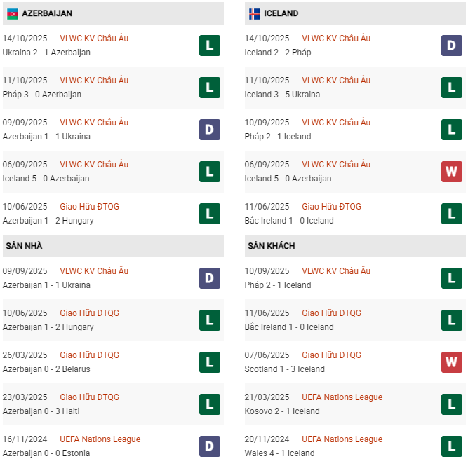 Phong độ của Azerbaijan vs Iceland không có nhiều chênh lệch. Trong khi Azerbaijan không thắng 5 trận gần nhất thì Iceland thắng 1/5 trận vừa xong.