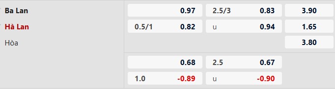 Thông tin tỷ lệ kèo bóng đá Ba Lan vs Hà Lan: