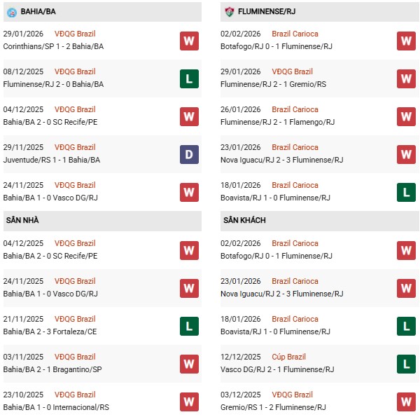 Bahia tiếp đón Fluminense trên sân nhà vào sáng 6/2/2026, trong khuôn khổ vòng 2 giải VĐQG Brazil mùa giải 2026. Bahia bước vào trận đấu này với tâm lý hưng phấn sau chiến thắng 2-1 đầy kịch tính ngay trên sân của Corinthians ở vòng 1, nhờ các pha lập công của Jean Lucas và Willian Jose.