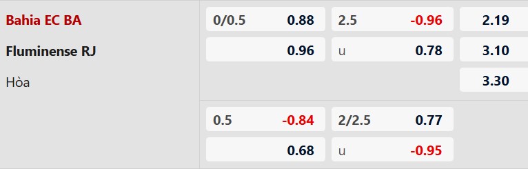 Thông tin tỷ lệ kèo Bahia vs Fluminense: