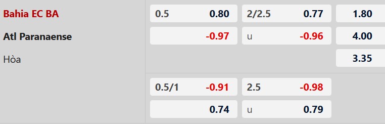 Thông tin tỷ lệ cược Bahia vs Paranaense: