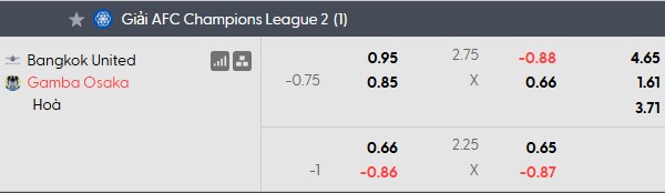 Thông tin tỷ lệ Bangkok United vs Gamba Osaka: