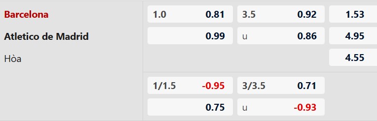 Soi kèo châu Á Barcelona vs Atletico Madrid: