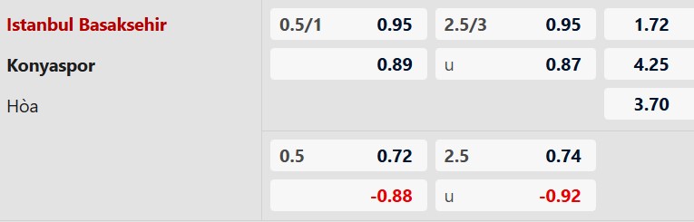 Thông tin tỷ lệ cược Basaksehir vs Konyaspor: