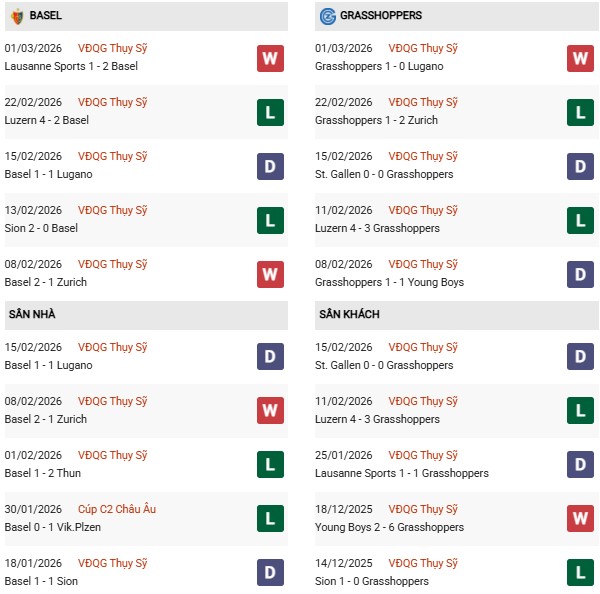 - Trên sân nhà, Basel thắng 5, thua 3 trước Grasshopper.