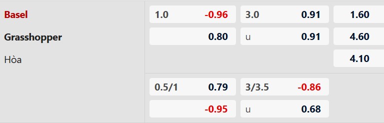 Basel thua theo châu Á: Basel mới thua theo châu Á ở 3/4 trận vừa qua. Ngoài ra, họ cũng thua theo châu Á ở 3/4 trận gặp Grasshopper gần nhất nên không phải là sự lựa chọn đáng tin cậy.